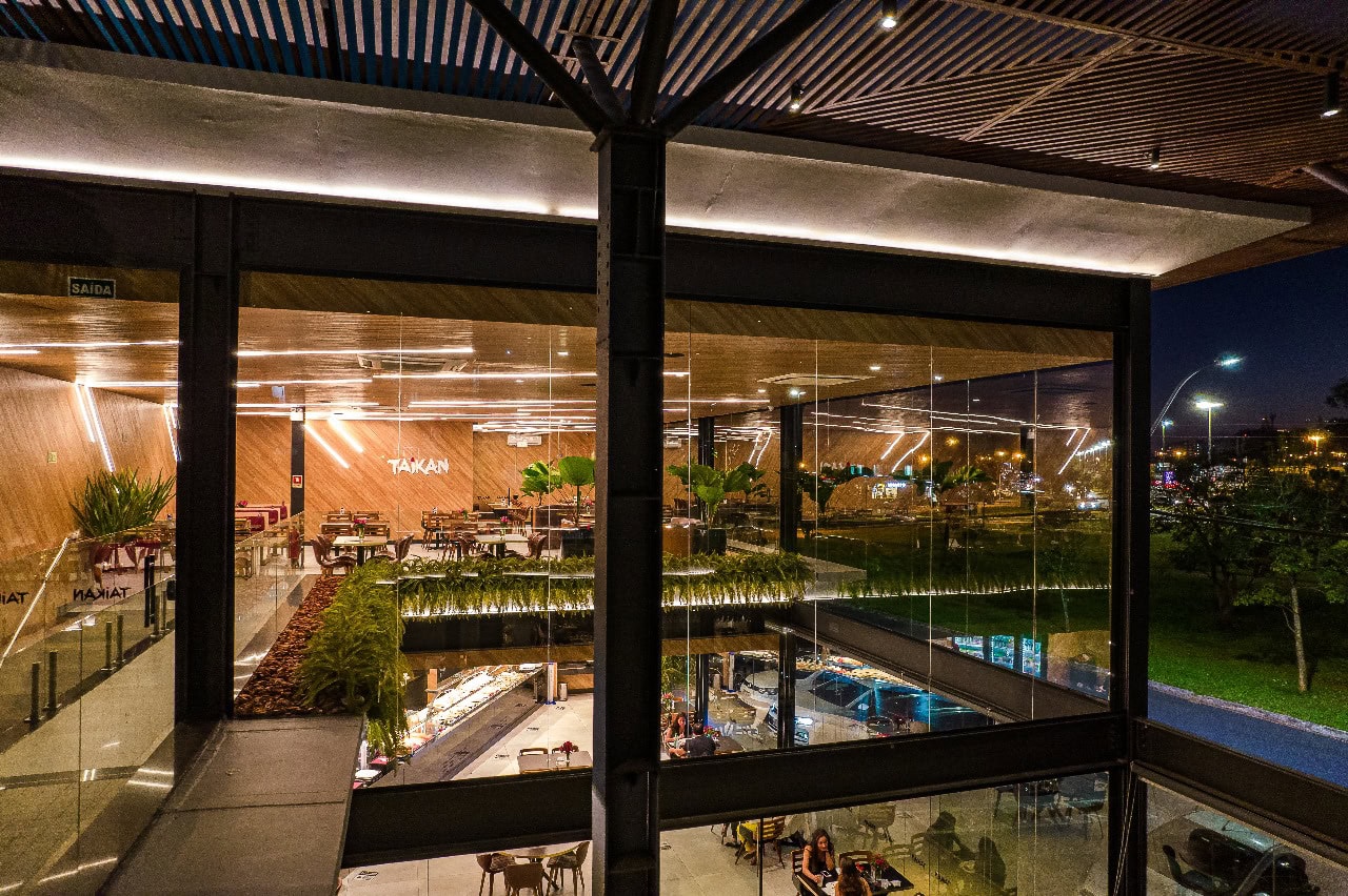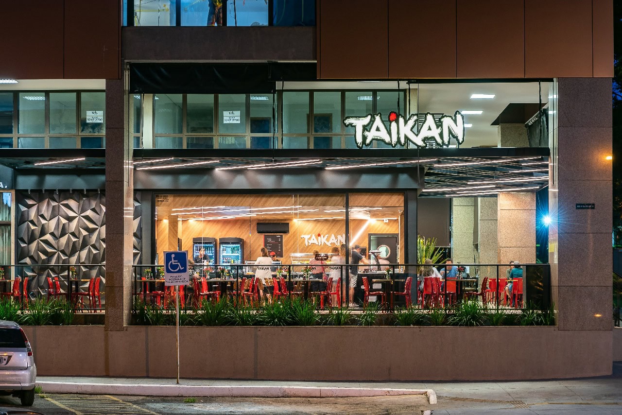Conquistas. O Taikan passou por uma revolução após o trabalho da Choque. Após o nosso primeiro projeto, no lago sul, o Taikan abriu mais 1 unidade na asa sul, reformou a unidade da asa norte e construiu um restaurante novo no Sudoeste. O crescimento no faturamento cresceu tanto quanto a popularidade dos seus restaurantes na cidade. A qualidade do projeto foi reconhecida em 2019 com a segunda colocação no prêmio nacional de iluminação comercial Abilux.